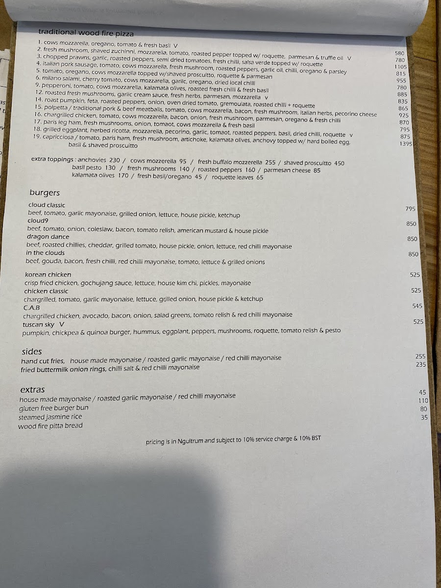 Cloud9 Gourmet Burger and Milk Bar offers a diverse and enticing menu that satisfies a wide range of tastes. The selection of milkshakes is particularly noteworthy, with the indulgent Chocolate Shakes with Marshmallow standing out as a must-try for dessert lovers. For those craving savory options, the Hummus Platter provides a refreshing and flavorful start to the meal. The pizza offerings are also impressive, with the Sausage Pizza delivering a hearty, satisfying combination of rich flavors. The Korean Chicken Wings add a spicy twist to the menu, offering a perfect balance of heat and sweetness, while the Espresso Con Panna provides a sweet and creamy coffee option for a perfect finish. Whether you're in the mood for something sweet or savory, Cloud9’s menu has something for everyone, making it a great spot to enjoy a delicious meal in Thimphu.